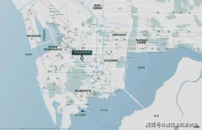 京基东滨时代位于——南山前海路与东滨路交汇处,距离地铁9号线荔林站E口300米,1站到前海核心区。这里被称作“三湾交汇”(前海湾、深圳湾、蛇口湾),周边环绕七大全球总部基地(腾讯、大疆、阿里等),未来260万人才涌入,听起来就像买了张“前海黄金门票”。