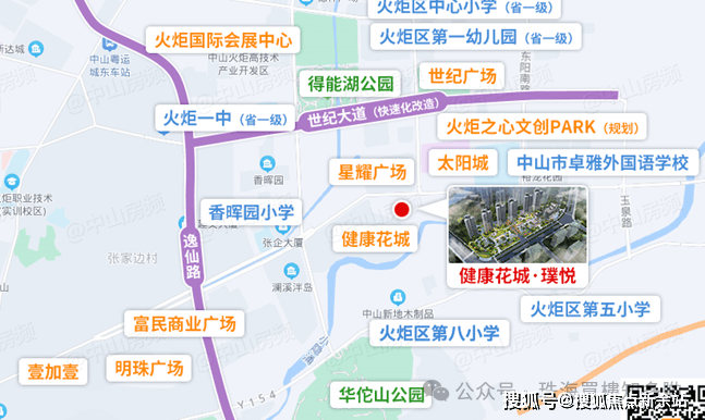 健康花城·璞悅位居深中雙樞紐,火炬金貴“中軸”之上!火炬至成熟配套圈接連成線,而健康花城·璞悅,就扼守在這條中軸南端,以地標社區的姿態,見證着火炬中心的崛起。