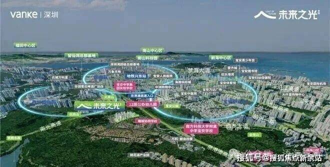 万科未来之光,位于宝安区新安街道广盛路与广泰路交汇处,项目所处片区为宝安尖岗山豪宅区,此地块为去年年初万科与深圳安居联合拿下的万科尖岗山项目地块,从项目出发,半小时可到达深圳最主要的工作区域:宝安中心、留仙洞、南山科技园、前海、后海、车公庙、福田CBD等,附近是南科大附中宝安学校。