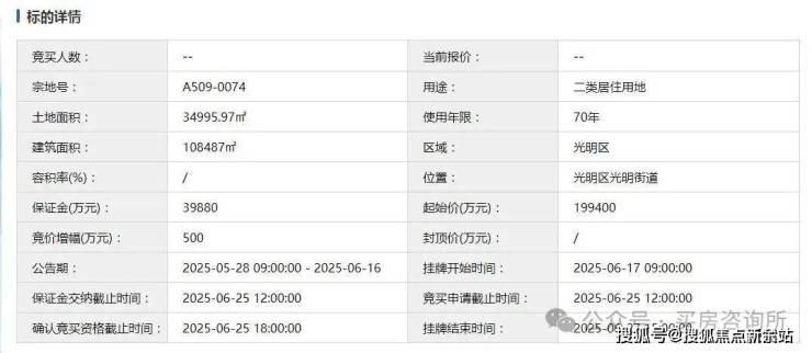 去年(6月27日),光明中心区宅地(宗地号A509-0074)由深振业、天健、深建辰投资联合体以底价19.94亿竞得。成交楼面价18380元/㎡。