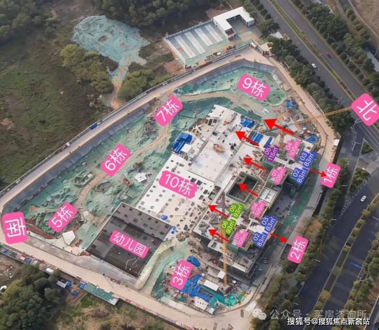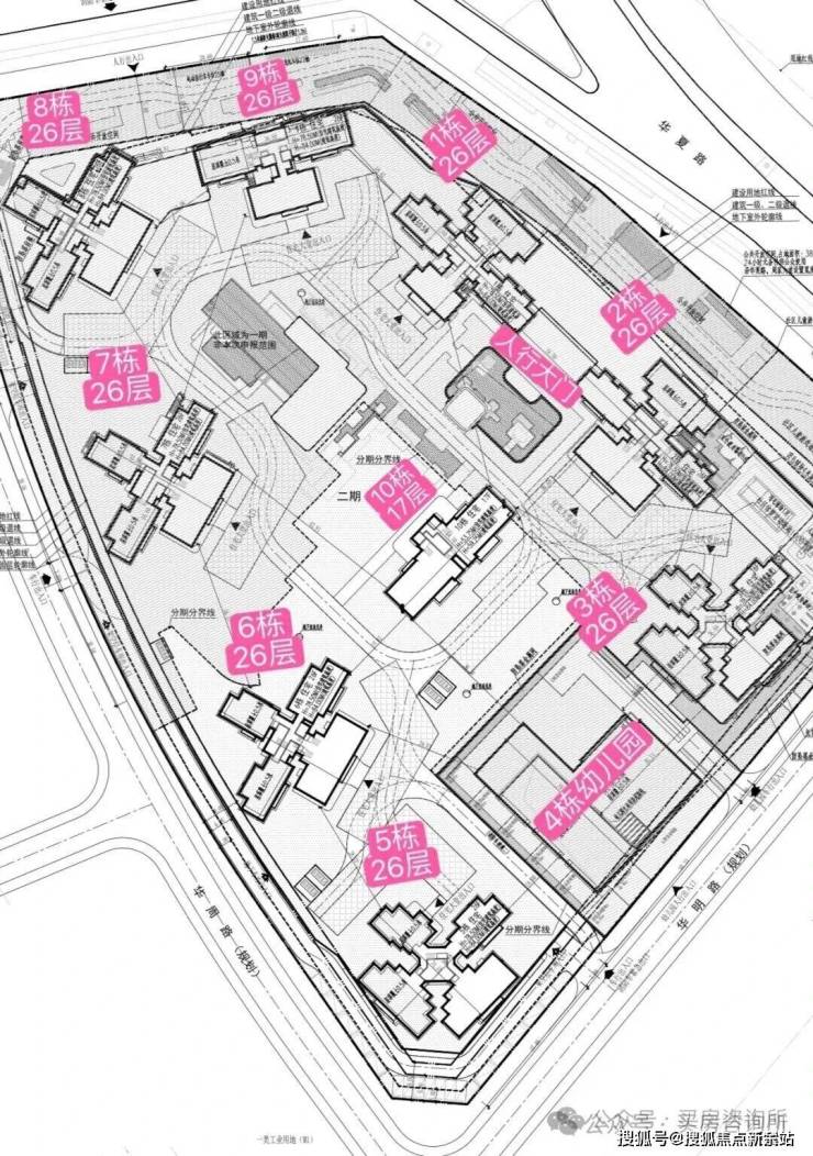 从效果图上看,项目规划9栋住宅和1所幼儿园,8栋塔楼约26层高和1栋十几层的板楼结合,采用合式布局。