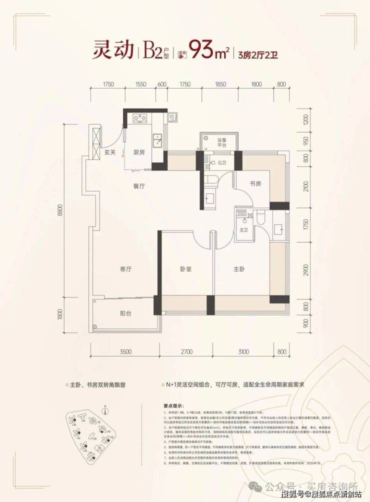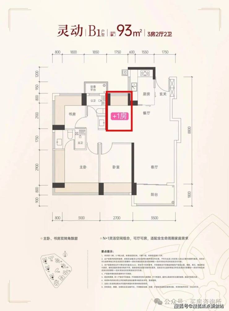 产品方面,大户型产品都用上了南北双阳台设计,主卧沿用新规270°大飘窗,连小户型儿童房也用上双飘窗,通风采光效果绝佳,预计得房率高达100%。其中93㎡可以改3+1房