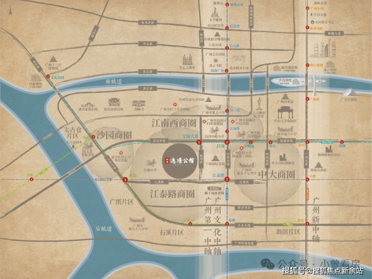 中冶·逸璟公馆项目地处广州市区海珠中心、江南大道之上的核心区位,尽享海珠区三条黄金居住走廊的价值汇集。