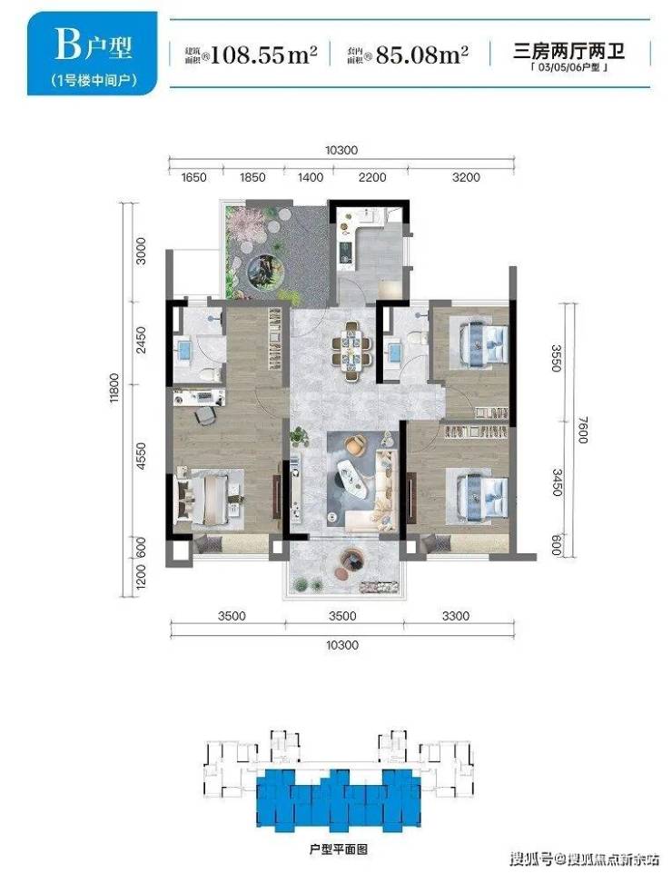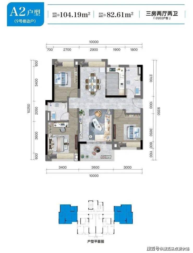 【洋房户型面积】建面约104-110㎡ 臻选三房两厅两卫