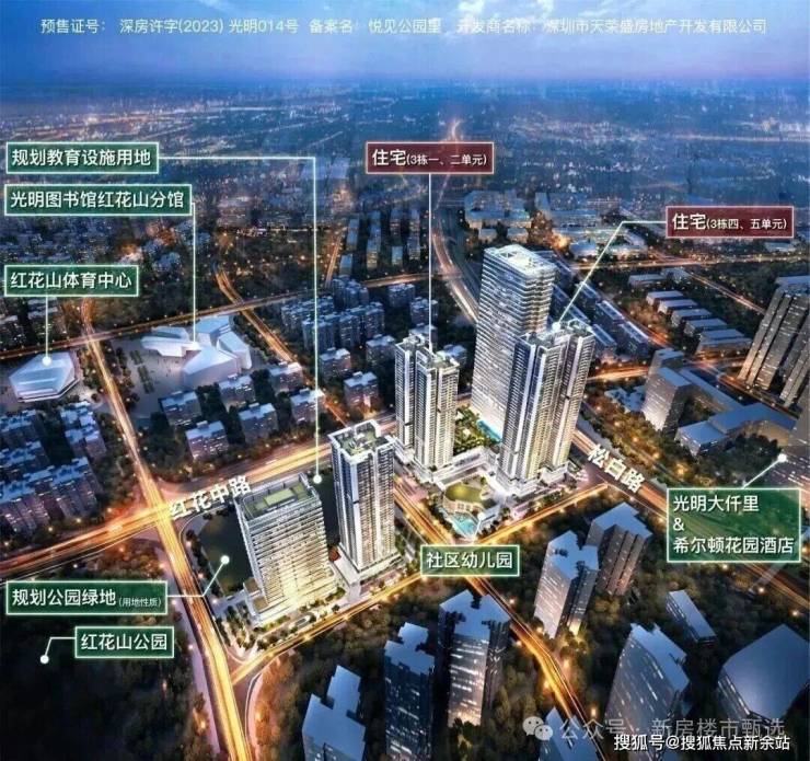 宏发悦见公园里,位于光明区公明街道松白路与红花中路交汇处,该片区属于公明最核心的区域,背靠红花山公园,一路之隔对面是大仟里购物中心,西侧是红花山体育中心,光明区图书馆(红花山分馆),6/13号地铁线双地铁口物业,分别是”红花山站","公明广场站"。