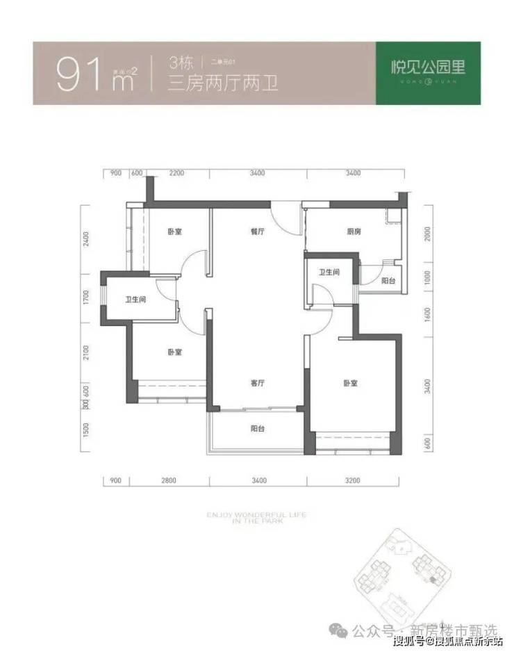 91㎡的3房2厅2卫,折后总价344-356万,单价3.78-3.91万/㎡。