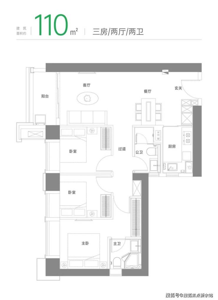 卧室标配飘窗,引入丰沛阳光,全家尽情舒展餐客一体贯通阳台,打造舒适、宽敞的欢聚天地奢享主卧,独享衣帽间、私人卫浴,自我非凡领地