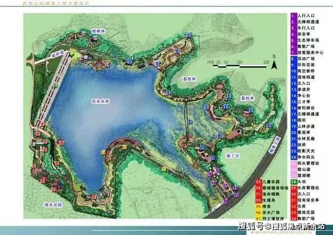 项目南边是民悦公园和民治水库,目前能看到民治公园建设工程方案设计图流出。