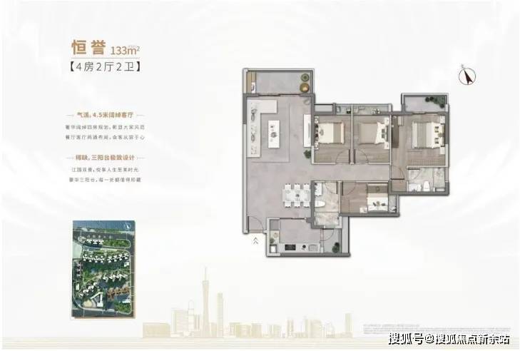约114㎡全南向多功能江景3+1房、约121㎡的中心区稀缺天幕江景四房等,让更多菁英共享不断升阶的白鹅潭江岸生活价值。