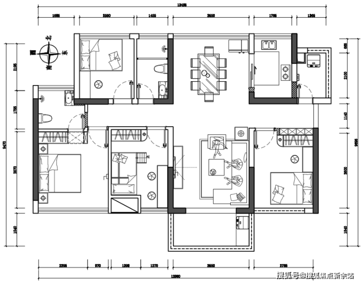 2、户型的原始结构很方正,区间分布也合理,硬装无需改动,主要的问题在于有4间卧室,每个卧室所能分配到的空间就显得比较有限,关键就看如何进行合理的布局。