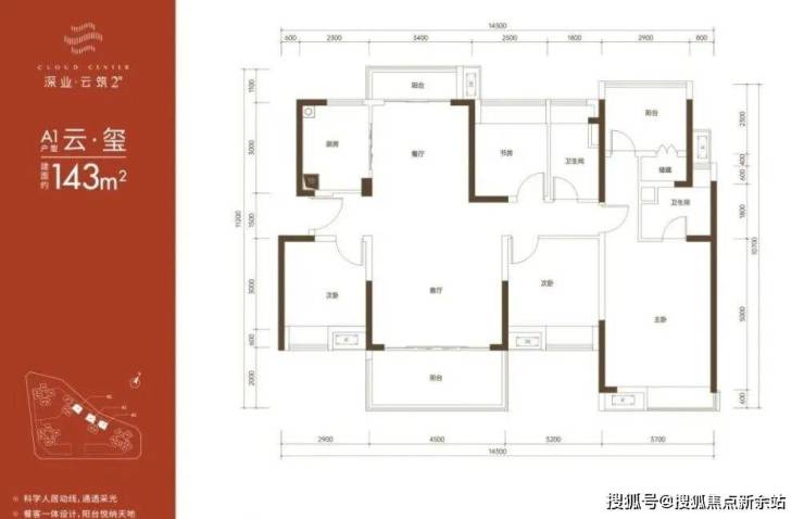 143㎡的4房2厅2卫,折后总价488万-528万/套,单价3.41-369万/㎡。