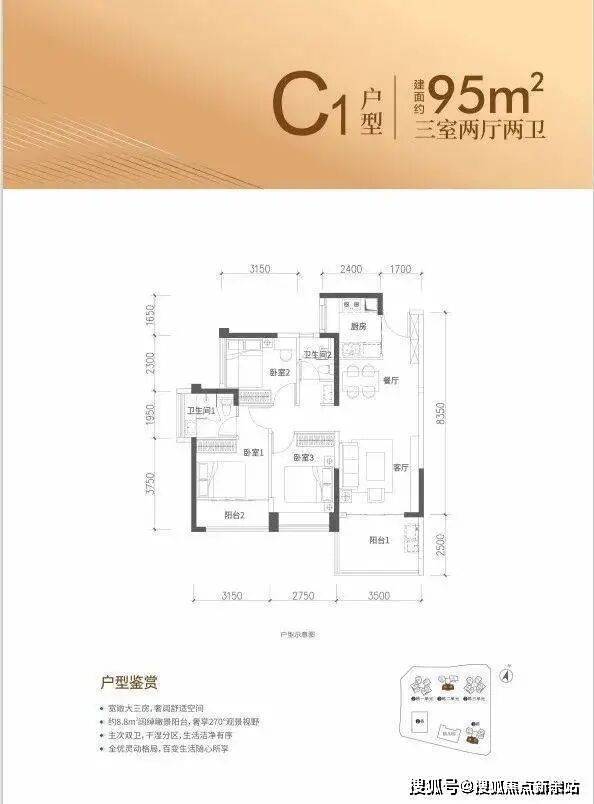 格局:经典竖厅设计,客厅3.5米开间,8.35米进深。
