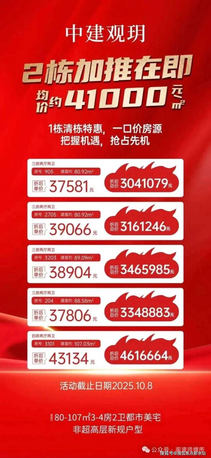 【中建观玥名邸】 2栋开始收诚意金登记,可能按照诚意金顺序选房!网红盘最后1栋,错过不再!1栋还少量房源在售,最高超100%实得率,80-107㎡新规后3-4房2卫,预计2栋10月中取证。