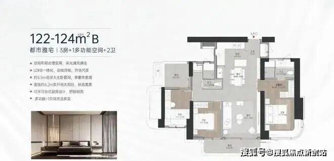 【122-124㎡ 3+1房2卫】B户型:双龙抱珠户型,次卧带阳台。西北朝向(06 )看绿地公园及花园