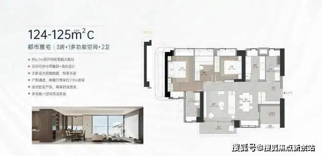 【124-125㎡ 3+1房2卫】C户型:横厅户型,双阳台设计。西北朝向(01)看绿地公园及花园