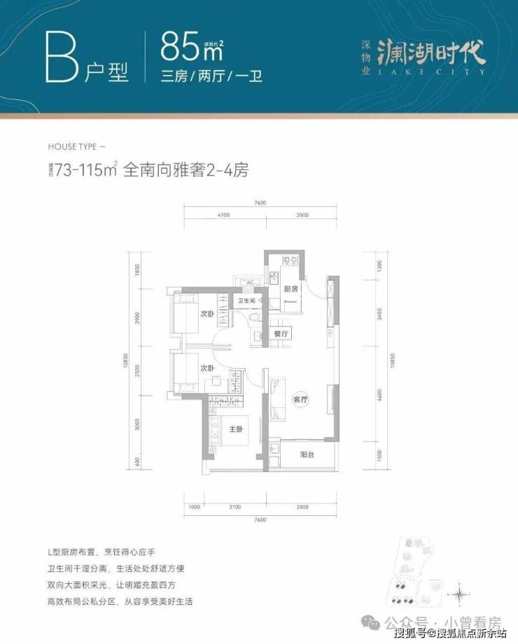 产品面积段:建面约73-115㎡全南宽奢2-4房