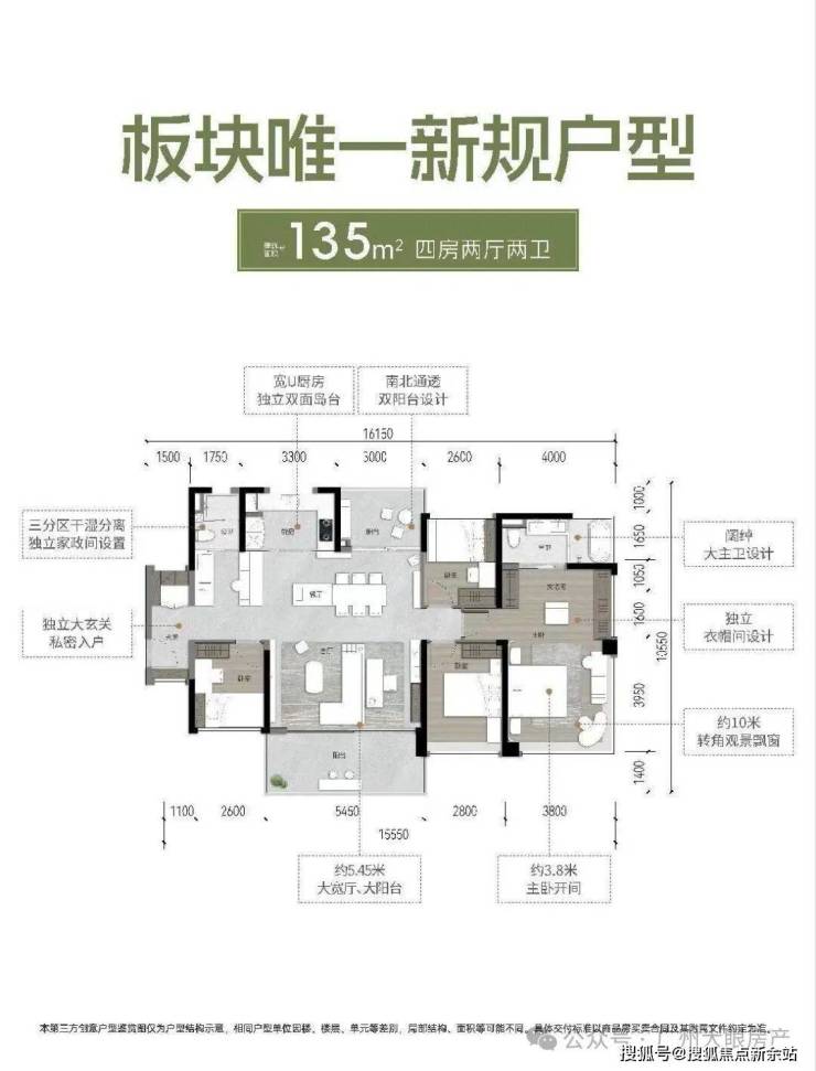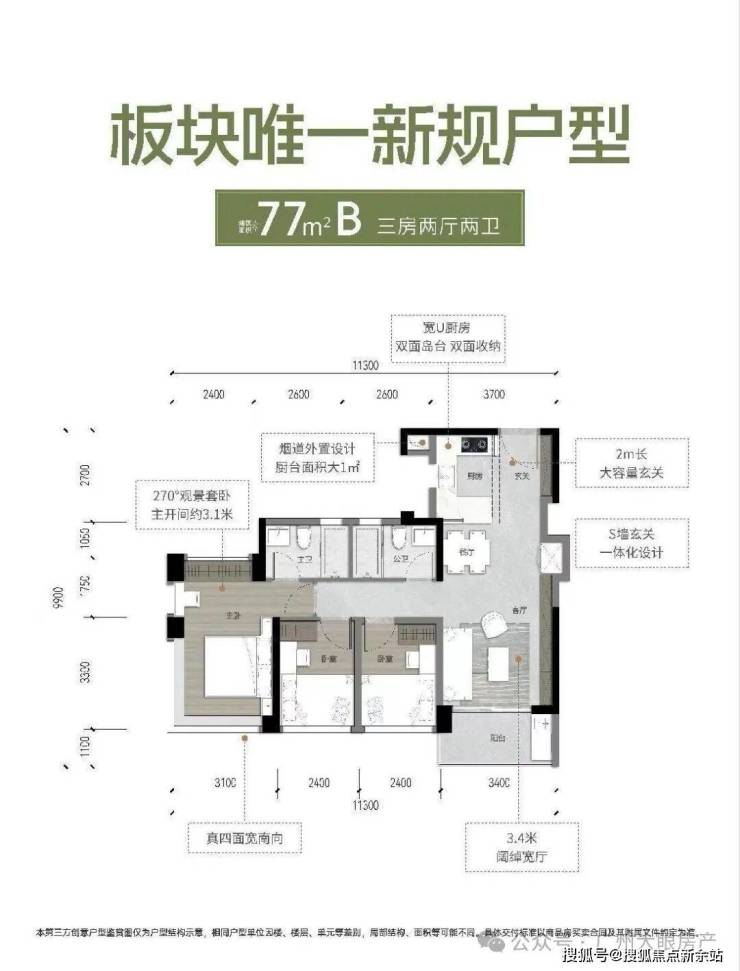 5,25万㎡南站首个新规项目,建面约77-135㎡三四房,四面宽南向,三房(最高)享约5米客厅,使用率最高可达138%,是整个广州南站板块唯一一个新规产品