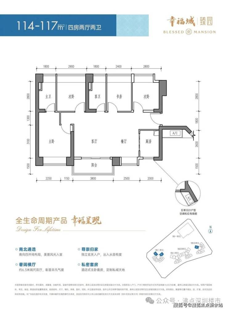 👉建面约114-117㎡4房2厅2卫(横厅)全明四开间 6.3m南向舒阔双厅 幸福洋溢