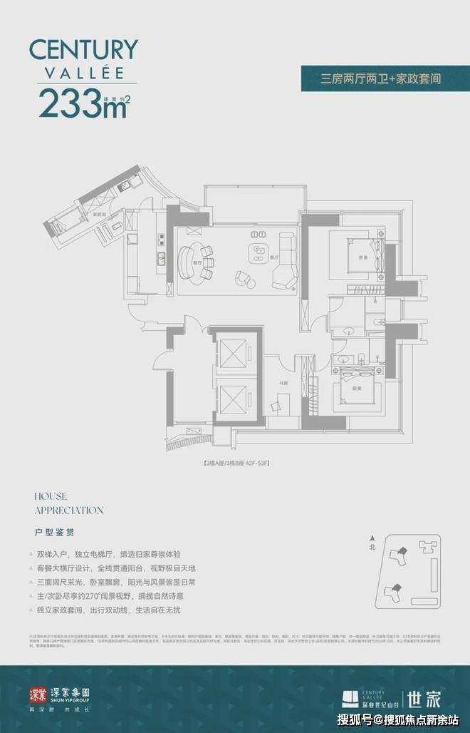 拥有深湾侨城核心景观的深业世纪山谷,推出深圳绝版级别的全新大平层住宅——深业世纪山谷·世家,建面约233-280-386㎡纯大户型,位于项目3栋AB座,近百米的楼间距,8梯3户、拥有头排高尔夫景观,私密性和格调拉满。