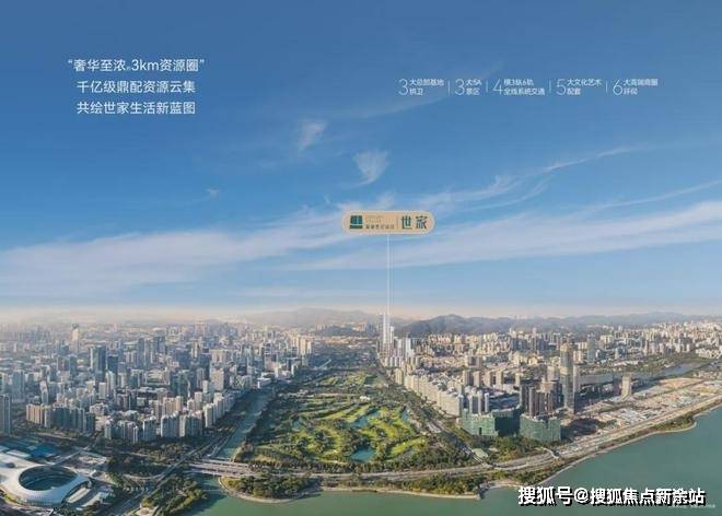 项目位于大沙河生态长廊之上,西临约200万㎡果岭名商高尔夫球场,推窗可享一线果岭生态景观。而且南向可以俯瞰深圳湾海景,以及地标建筑春笋和跨海大桥,把“名片级”景观尽收眼底。容积率仅为5.78,楼间距近100米,8梯3户的配置,这几项数据带来的私密感和舒适感,几乎“碾压”了同级别的产品。临近地铁1号线白石洲站,以及规划在建中的29号线(白石洲北站),同时紧临沙河东路、北环大道、深南大道等城市主干道,可快速抵达深圳各区。步行可达世界之窗、锦绣中华和欢乐谷三大国家级景区,还有何香凝美术馆、华·美术馆等文化地标,人文艺术氛围浓厚。益田假日广场、万象天地等醇熟商业满足日常购物。