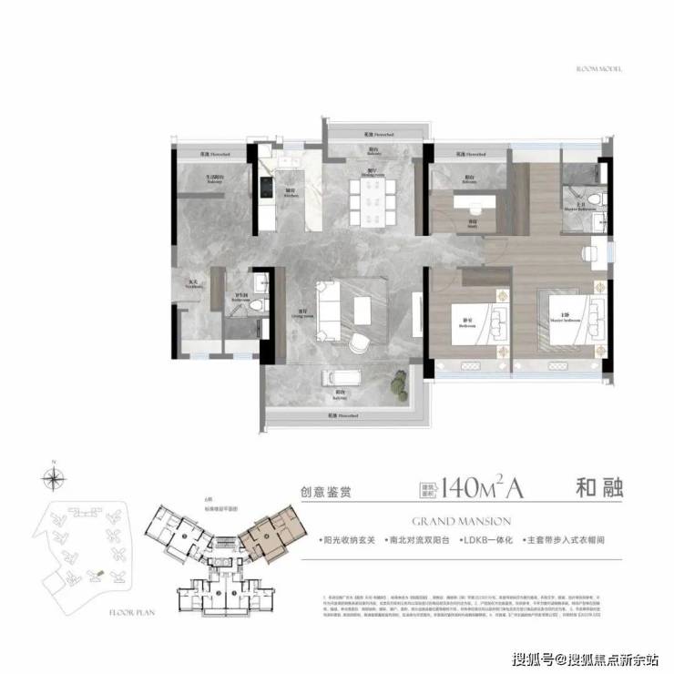 建面约180㎡产品迭代,将层高升级到了3.1米,LDKB一体化的尺度感更大更通明,餐客厅阳台视野和采光明朗舒服。