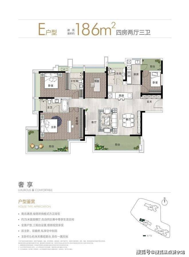 面积:约90-110-155-186㎡2-3-4房