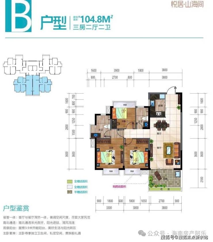 在售户型面积:约103㎡~104㎡