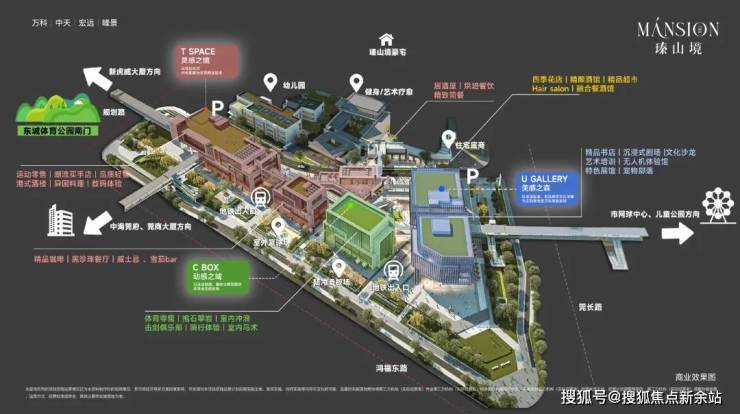 三座人行天桥将商业、文体与生态资源交织成网,从小区商业出发,步行即达莞商大厦、网球中心、香遇走廊等,步行半径内无缝衔接鸿福路、莞长路及东城体育公园。