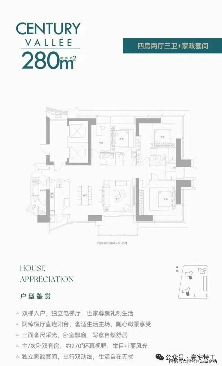 前两次都是公寓,现在住宅首发!还是定位相当高端的纯大平层而且还是无敌景观视野,8梯3户,233㎡/280㎡配备两个独立电梯,386㎡双梯设计,实在任性!