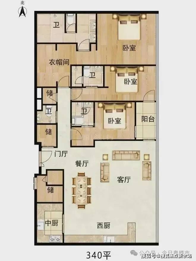 340平:3套房,套房设计,带多功能藏宝阁。