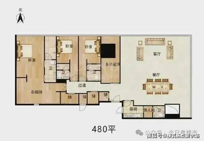 480平:3+1房(三套房)客厅105平,主卧65平奢阔设计。