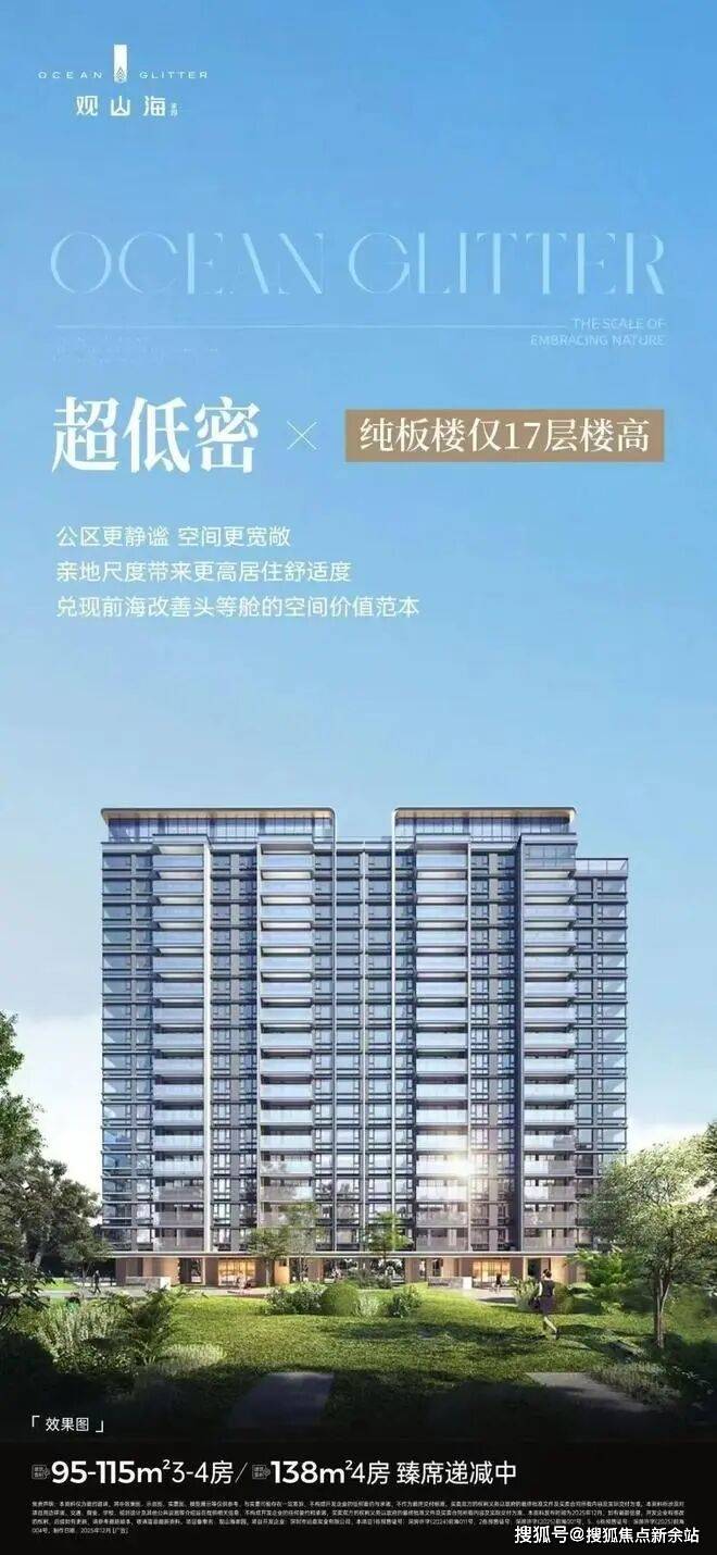 南山「远洋·观山海家园」4栋作为前海片区稀缺的低密板楼产品,于2025年7月23日取证后,已于7月26日正式开盘销售,合同约定2026年12月31日前带精装交付,目前项目主体已封顶,为准现房状态。