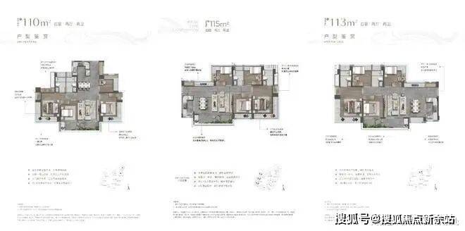 横厅南北通设计(113㎡):6米景观阳台连接客餐厅,主卧套房带 L 型飘窗,部分房源俯瞰大南山,得房率约96.5%,部分户型可改造为“四房 + 书房”复合空间。
