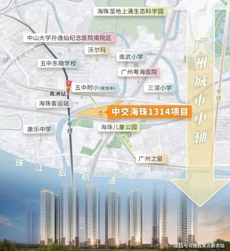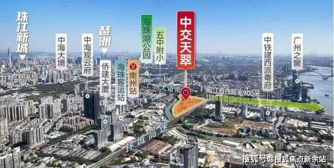 中交天翠地处广州城市中轴南端,步行 400 米就是地铁广佛线 + 2 号线南洲站,实测 35 分钟直达珠江新城,20 分钟到琶洲