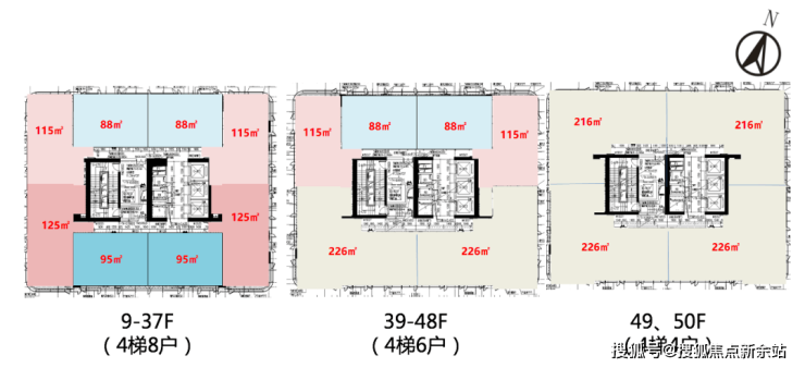 户型分布在高区33-47层,4个户型朝向,也可以两套打通做620㎡大户型,东南跟西南主要看海景,西北跟东北斗可以看部分海景+大小南山景观