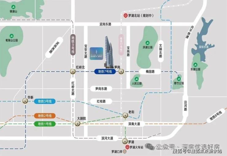 无缝接驳地铁7号线笋岗站D出口(已开通),地铁17号线笋岗站正在规划中,邻9号线红岭北站。