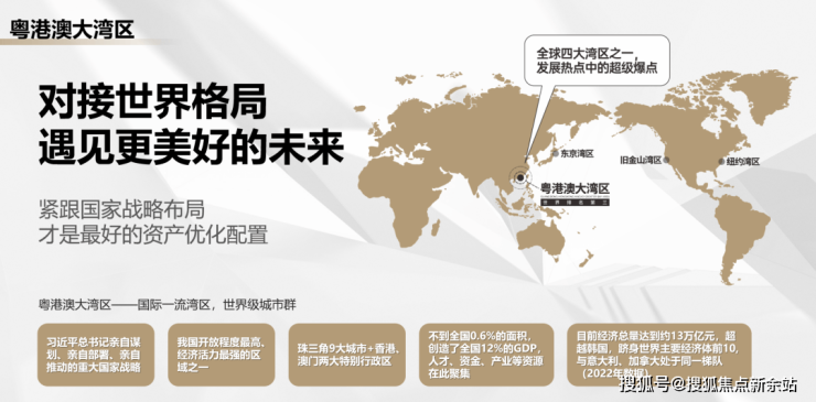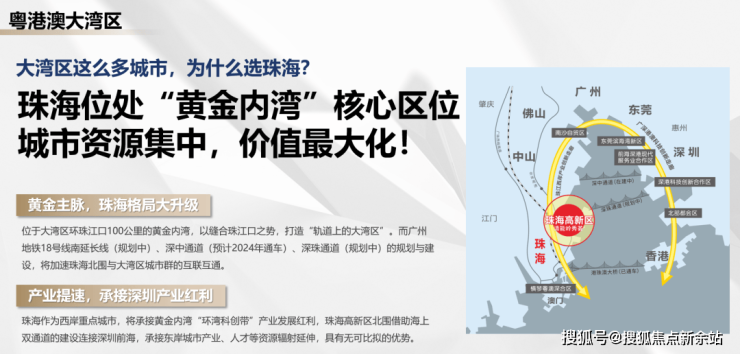 项目位于粤港澳大湾区的重要节点城市珠海,粤港澳大湾区现在无疑是整个中国最热的区域之一,作为全球第四大湾区的粤港澳大湾区囊括了三大湾区功能,国际贸易、科技创新、金融服务及先进制造业,多管齐下,其整个经济总量是旧金山湾区的2倍,接近纽约湾区,未来前景不可估量。