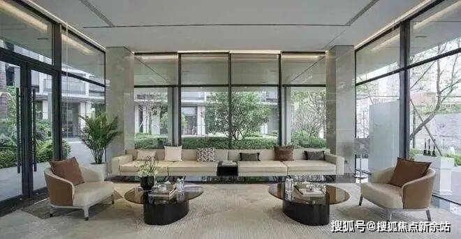 缓缓流动的海浪水景、海礁植物园、约400㎡露天泳池和背后郁郁葱葱的园林,串联而成一条高颜值的艺术中庭,非常符合当下年轻人的审美。