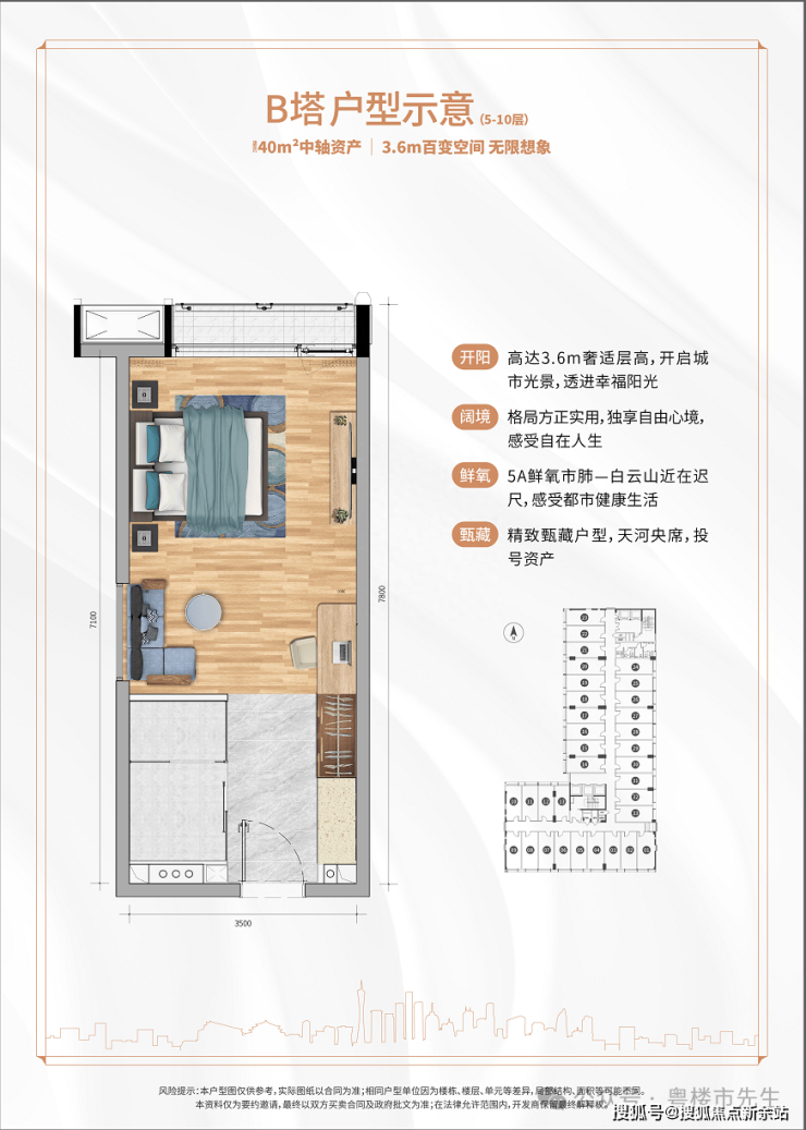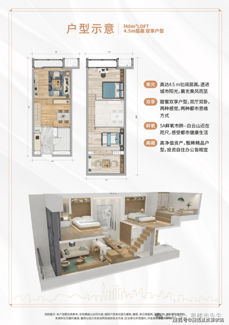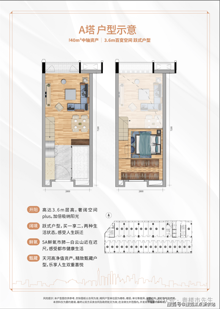 观云大厦:推售建筑面积约为36-43㎡酒店行政公馆、31-54㎡中轴精品空间,合理规划卧室、厨房、卫生间,3.4-3.6米高超高空间,重新解构空间的秘密,满足自用、办公、投资多重需求;创造独一无二的能量补给站,为城市奋斗者缔造一个理想的乌托邦。