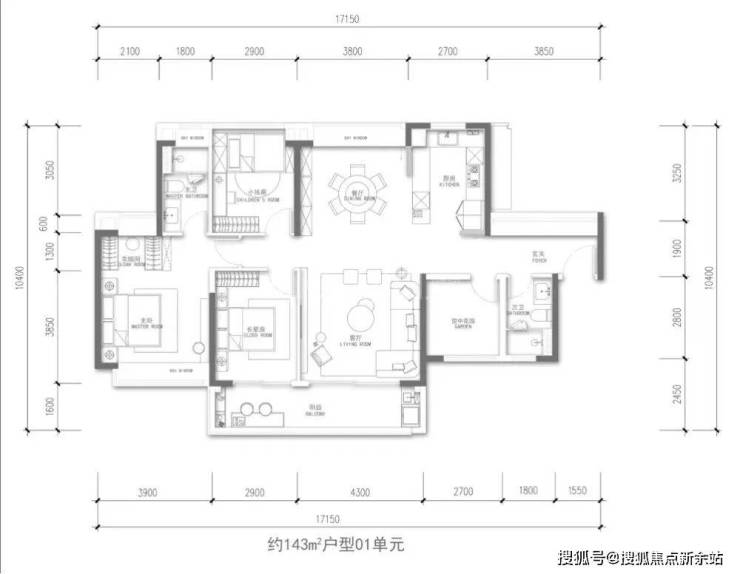 入门主力:建面约 143㎡ 3+1 房两厅两卫,7.2 米南向阔景阳台,南北对流,中西厨独立岛台设计,LDKB 一体化厅堂,适配高端首改客群;