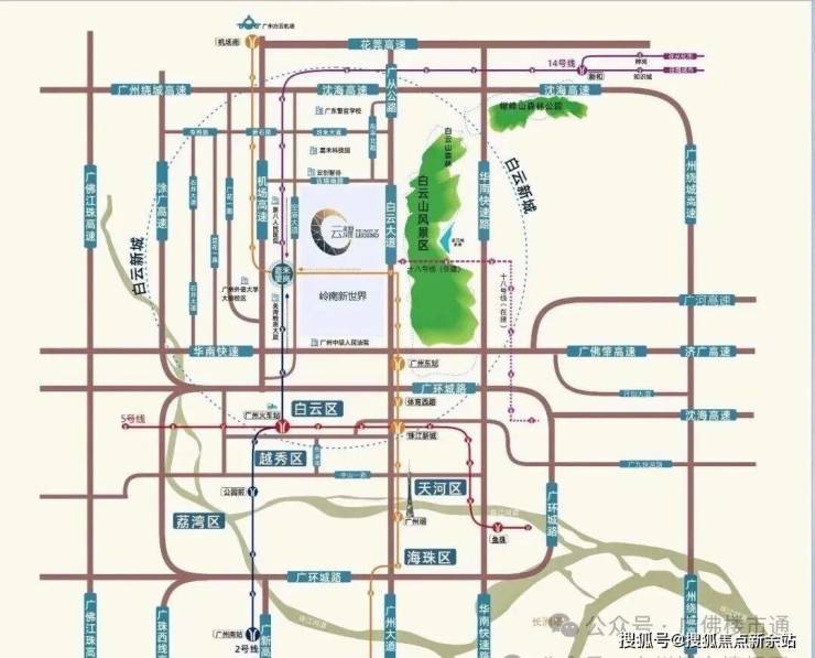 2号线直达广州火车站、广州南站、3号线5站即达白云国际机场、14号线连通白云及从化,未来更可直达清远、中山、珠海等地