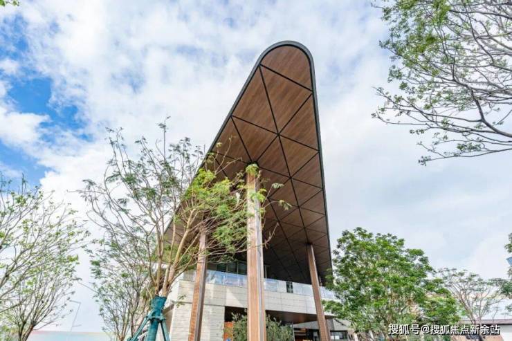 在生活美学馆,约9.5米挑高的超大屋檐不光颜值出众,以后也可以为业主遮阳挡雨。