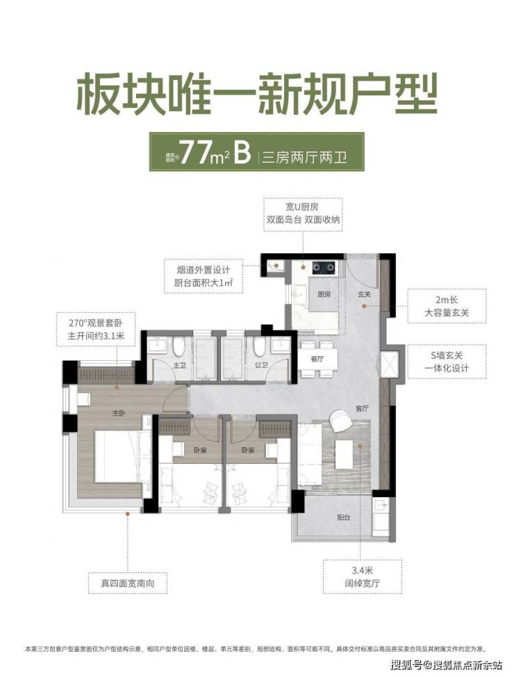 户型方面,主推建面约77㎡、88㎡、103㎡、105㎡、135㎡三到四房,作为南站万博首个新规产品,实用率超120%。