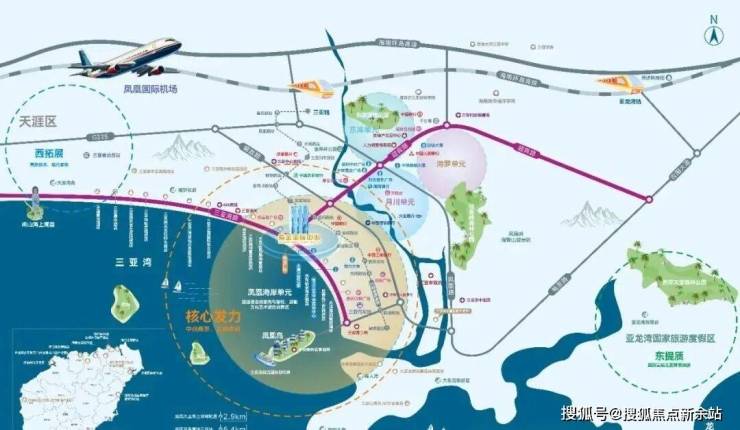 凤凰海岸单元——三亚中央商务区核芯片区,定位为旅游港自贸服务与邮轮、游艇、文化艺术综合消费区。紫金国际中心落位于此,匠造建面约6万㎡国际总部基地,实现区域城市服务、旅游文化、总部经济等产业资源全覆盖。