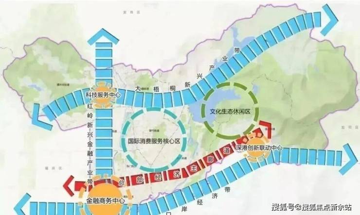 大湾区金融极:其中红岭新兴金融产业带作为"深圳三大金融增长极”之一,与前海国际金融城、福田香蜜湖金融街并列,罗湖将先天的金融优势及政府的政策支持,以金融产业赋能罗湖新发展,助力深圳成为大湾区经济发展引擎。( 信息来源:罗湖发布)