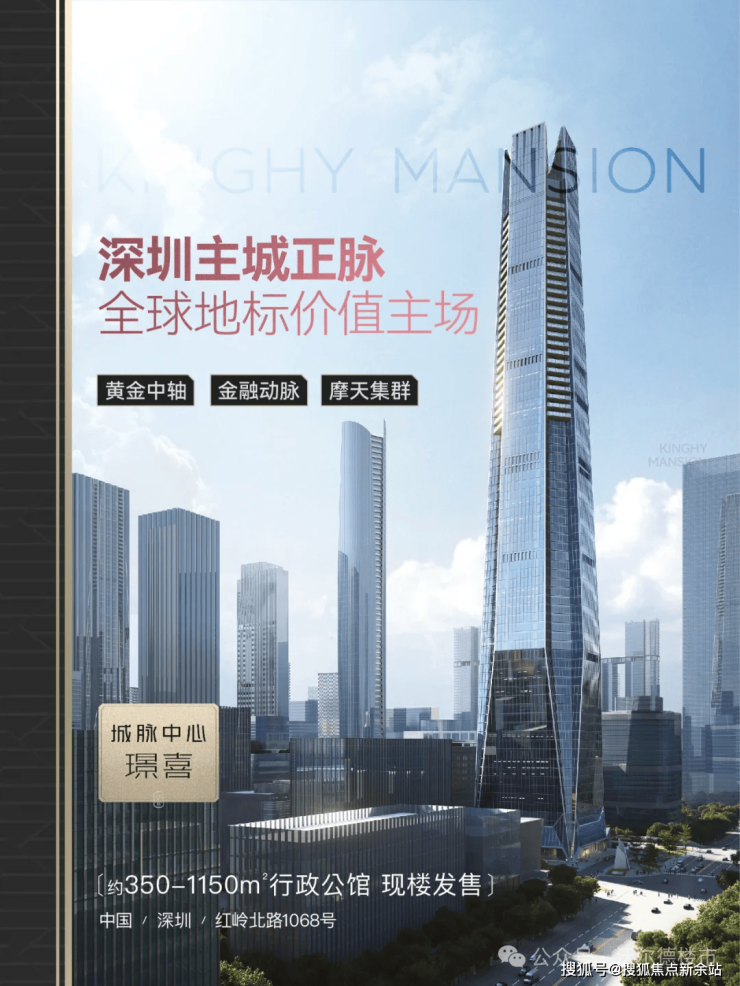 当摩天资产成为国际流通的“价值护照" 世界塔尖的目光,正聚焦中国。 ◆ 全球地标 天际资产◆ 388米深圳天际线地标 城脉中心·璟喜 正以中国资产的世界叙事 重构全球财富坐标 ◆ 超级区位底盘◆ 深圳黄金中轴、世界级金融街之上 福田、罗湖、香港三区资源中心 立足百万方城脉汇的高端商圈配套 铸就璟喜不可复制的资源王座 ◆总裁级行政公馆 ◆ SCDA&CCD双大师设计大平层 户户自带40㎡私人观景台 不仅是纯粹的空间占有 更总裁是对话世界的云端会客厅 匹配全球资产买家眼界与品味
