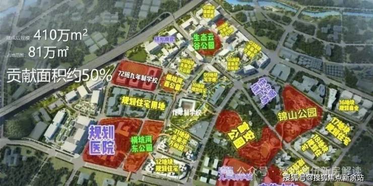 鸿荣源观城 总占地面积约68万㎡,其中有40万㎡属于鸿荣源,包含住宅、商业、产业,还有约28万㎡由鸿荣源代建移交政府的公共配套,包含绿化、水系、公园、学校、医院、养老院、文体设施等。