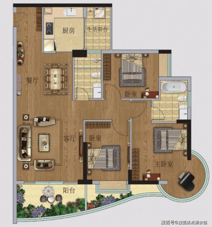 06户型【107房 3 房 2卫】环幕江景