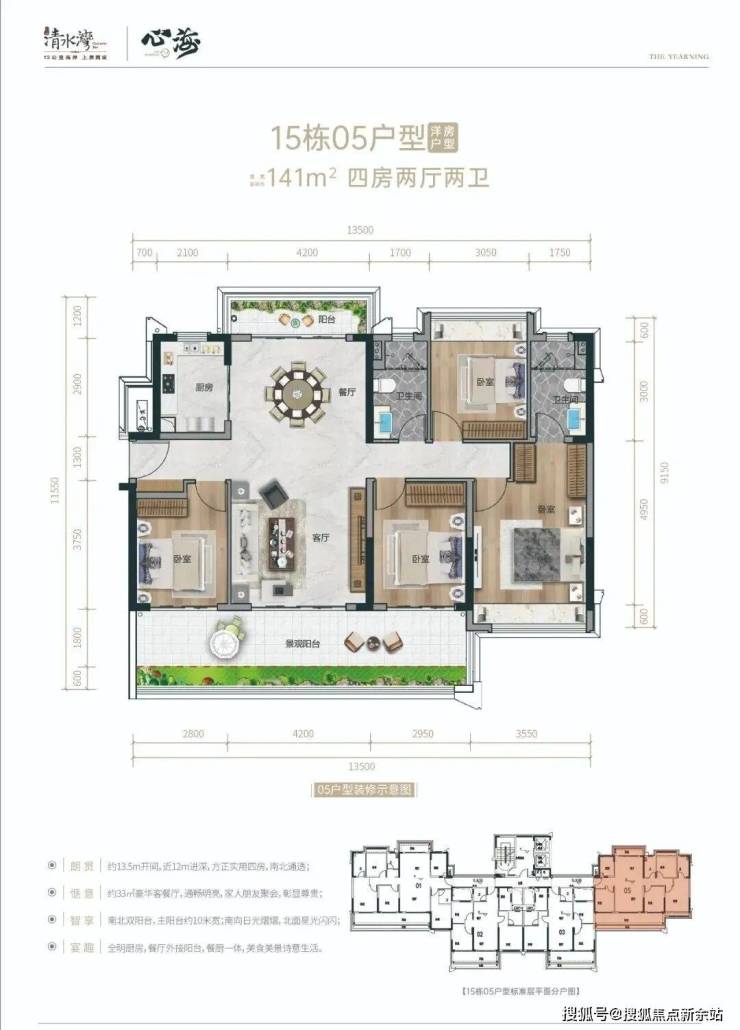 15#05号房、16#01号房、29#01号房141㎡户型,四房两厅两卫15#01号位、16#05号位、28#01、05号、164㎡四房三卫