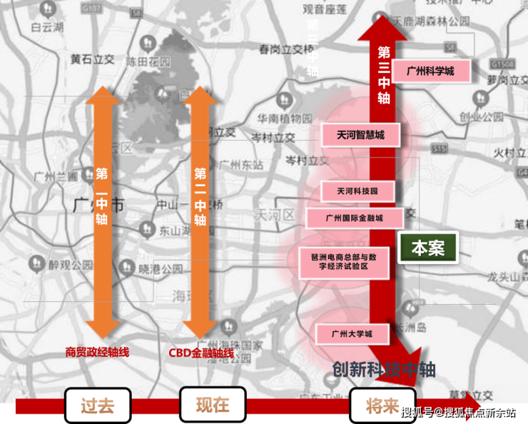 ✔广州发展第三中轴:黄埔位于广州第三中轴“创新科技中轴”之上,将引领广州下一个黄金十年,而项目正处于第三中轴核心,势不可挡